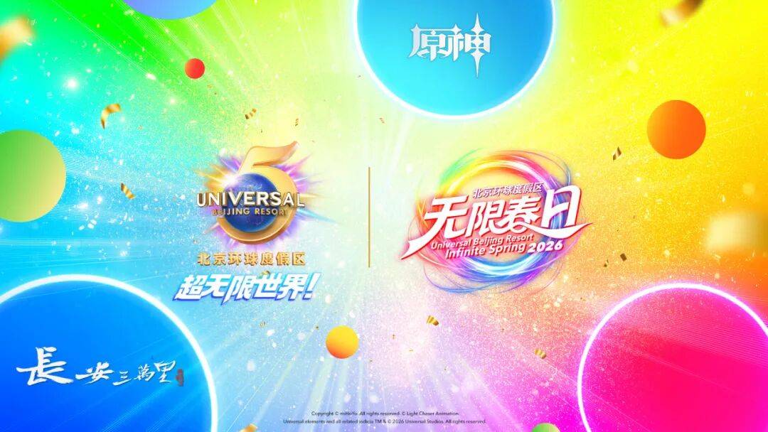 值此庆祝开园五周年之际,北京环球度假区宣布,长安三万里、原神、盗墓笔记、第五人格等多个全球高人气 IP,将分别加入2026年北京环球度假区“环球无限春日”和“惊彩”环球主题性季节活动,通过跨次元IP联动呈现独家故事、结合更丰富的剧情和玩法,为广大游客与IP粉丝带来满足多元热爱的主题公园沉浸式娱乐体验。