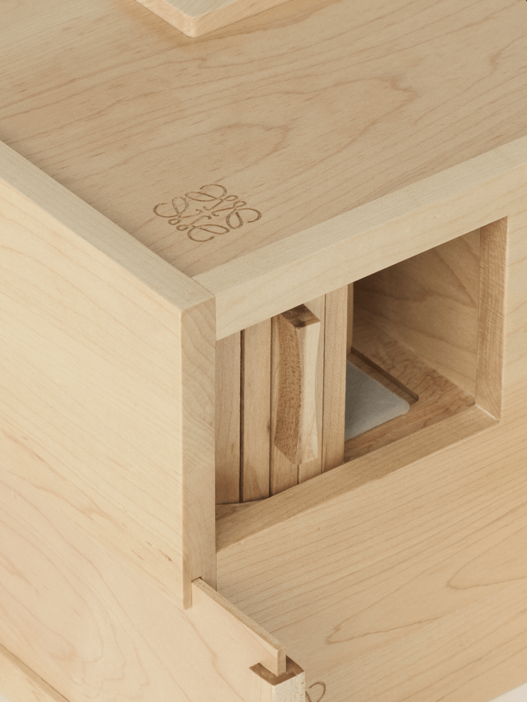 此多宝盒以枫木手工打造而成,共有九格藏宝空间,体现出空间运用的巧思:顶部的拉手成为部分空间的隐藏“钥匙”其他空间则可透过多重玩味方式开启。此多宝盒是工艺与艺术之杰作,亦将成为珍宝的集合之地一九格空间,九件珍宝。