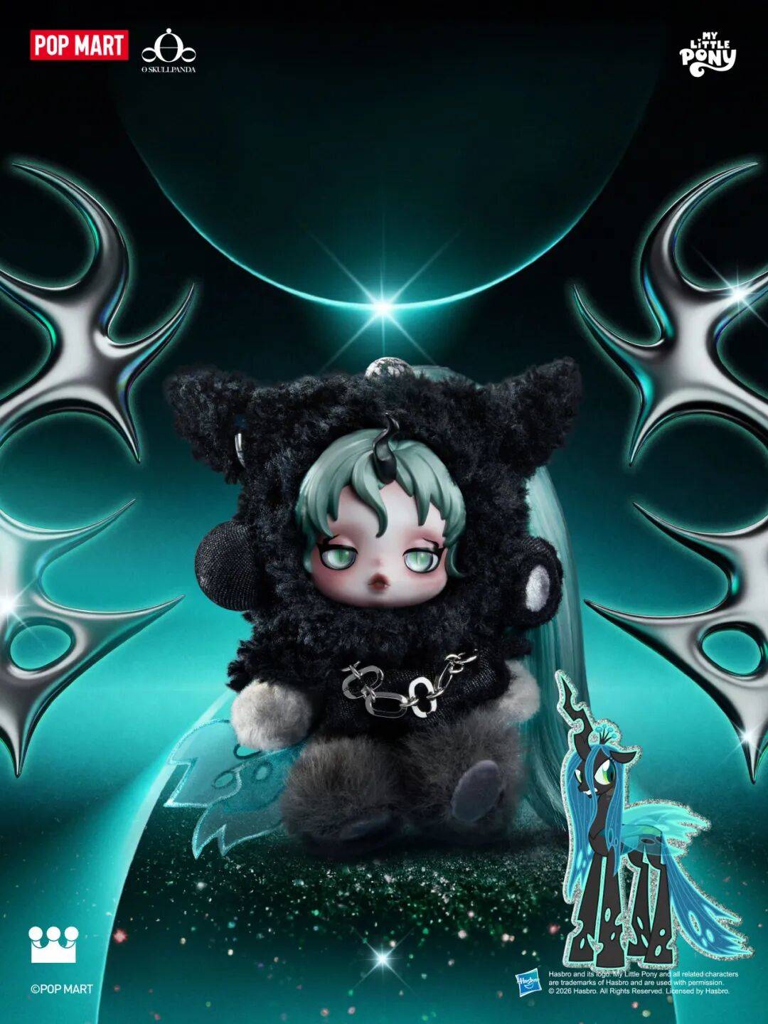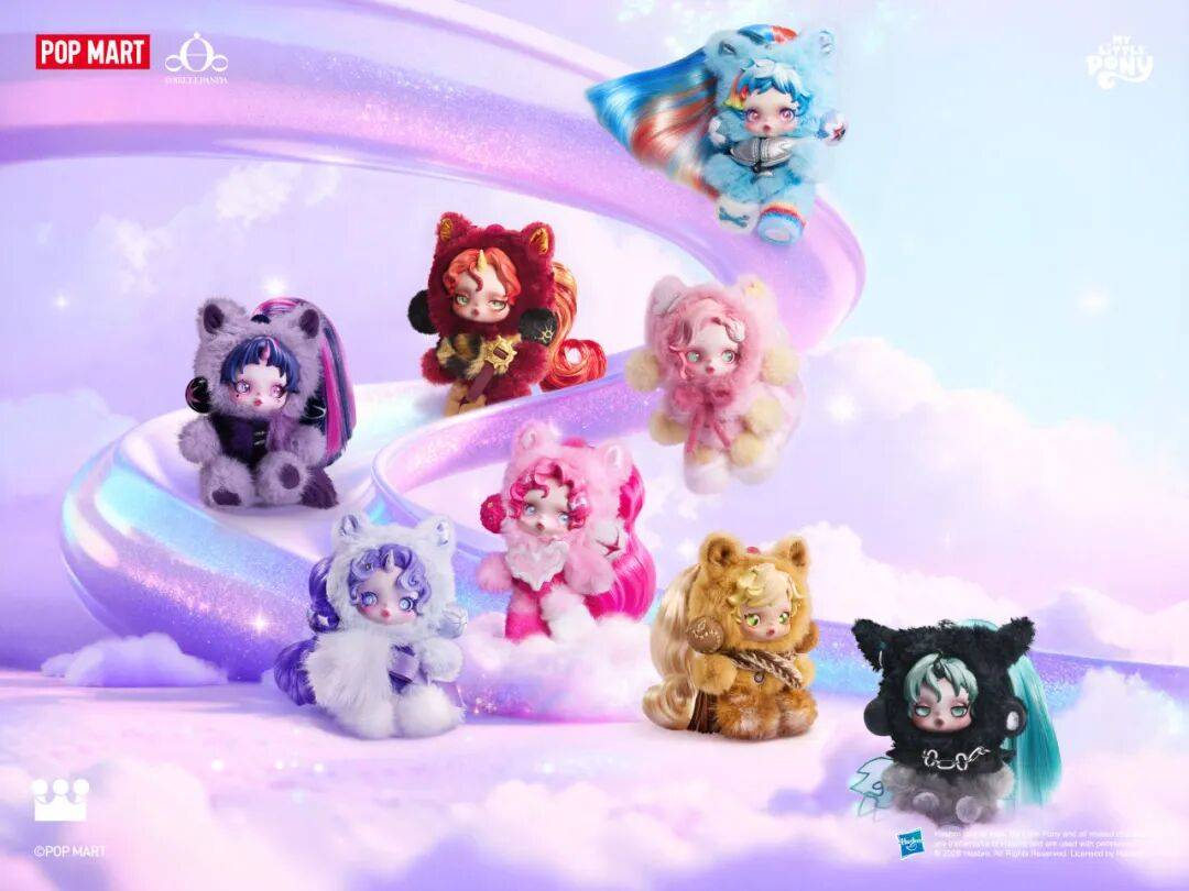 此次合作是θ SKULLPANDA与小马宝莉内核精神的巧妙呼应。θ SKULLPANDA系列强调回归纯粹、轻盈的自我精神状态;而小马宝莉动画自播出以来,其旨在传递美好友谊的故事始终围绕着真诚、勇气与欢乐展开。将小马宝莉角色的灵魂色彩与性格特质,注入SKULLPANDA的独特载体之中,充满温暖与奇幻感的视觉盛宴静待启幕。