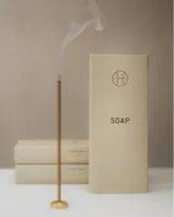 小豆蔻与白胡椒轻柔交织,缀以轻盈的醛香与橙花,最终沉淀于白麝香、龙涎香与零陵香豆铺就的暖融基调,呈现洁净而私密的织物气息。线香则由日本遵循古法制香的匠人工坊手工制作,延续相同香气主题。