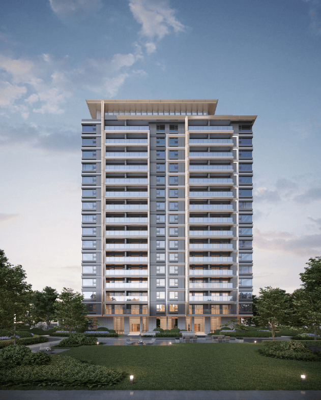 材质上,选用了部分铝板,具有摩登现代的立面气质。塔冠部分,搭配穿孔铝板与泛光照明形成呼应。夜晚远望,像极了泛舟江上的灯火,更像是指引每位业主归家的温暖明灯。