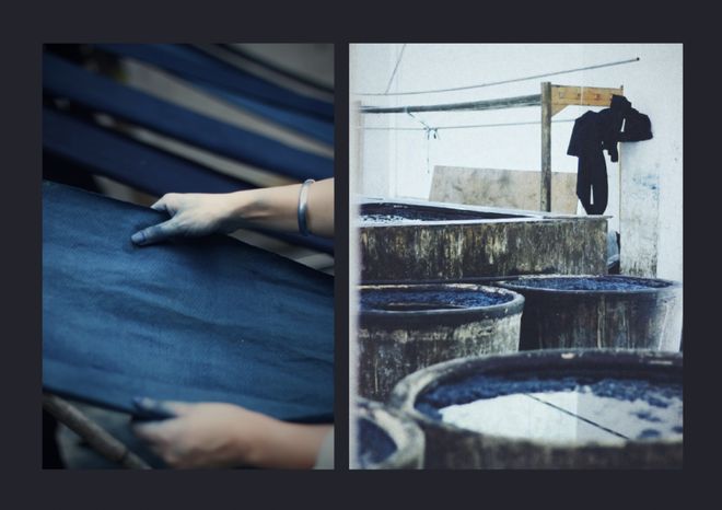 HERMAY在当代设计之外的工艺维度,恪守来自村寨的纯正手工。本季产品所用亮布来自贵州榕江三宝侗寨,由当地的棉花织布、自种蓝靛、薯莨染色,38道工艺因为对传统工艺的传承以及对天然材料的使用,获得中国知识产权局传统知识TK001号亮布认证。