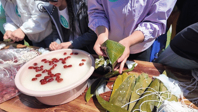 在湖南张家界黄龙洞景区生态广场,60多名来自印度尼西亚的游客兴致勃勃地参加了“端午佳节·‘粽’情相约”民俗体验活动。在景区工作人员指导下,印尼游客从选粽叶、折粽叶、填充糯米到捆扎,学得有模有样。印度尼西亚游客魏琳开心地告诉记者,“在这边非常高兴可以体会到自己做粽子,学习怎么捆,怎么包扎的感觉。包粽子这个活动,为我的旅程增添欢乐和温暖。”